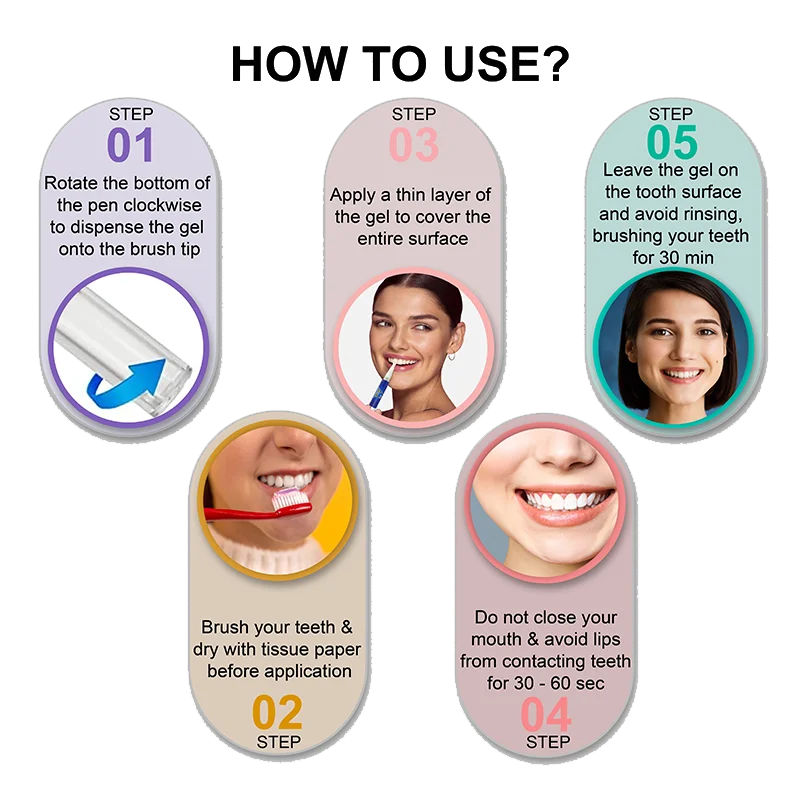 • You may brush using toothbrush before or after, however, it is recommended that you brush after using the gel pen.